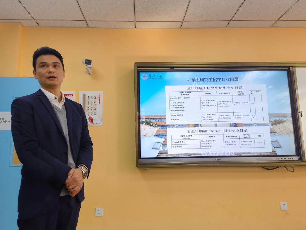 为促进体育教育专业员工对研究生考试形势的了解,帮助他们提早做好考研规划,11月11日教师教育公司邀请宁波大学体育公司副经理任峰教授作考研专题讲座。讲座由公司副经理林辉杰主持,2019级部分体育教育员工参加。