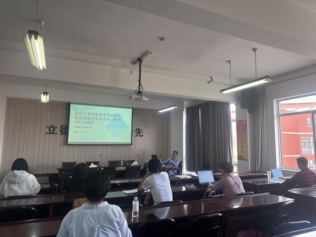 主题:1.不焦虑的父母:优秀家长家庭教育胜任力研究---董江华2.基于具身认知理论的高校课堂教学改革的构想与实践---温国旗参加人员:葛福强、卢尚建、粟高燕、李宇亮、陆秀清、董江华、宋杰、温国旗时间地点:2023年12月14日,840